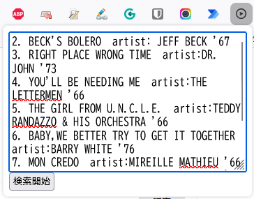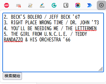 Spotifyは賢くて「2. BECK’S BOLERO / JEFF BECK ’67 」のような感じで、先頭のナンバリングのための数字や、末尾のリリース年のような、余計な情報を入力してあっても、ちゃんと検索してくれる。