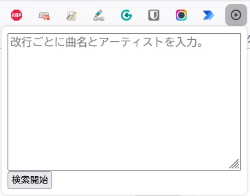 拡張機能を実行すると、テキストエリアのあるダイアログボックスが表示され、そこに改行付きのリスト文字を入力すると、1行ごとにShopifyを検索して複数タブで表示するようにしたい